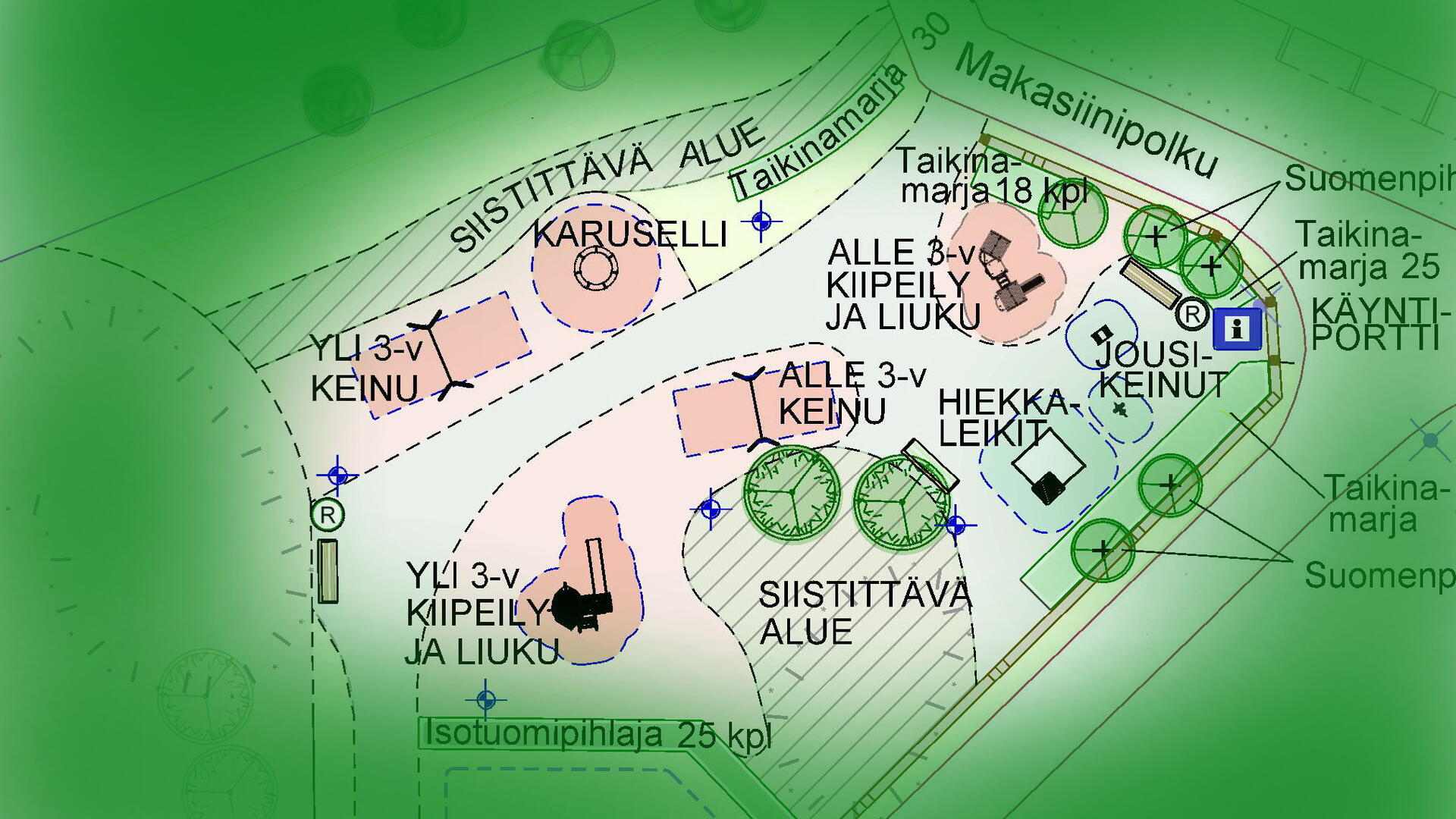 Suunnittelukohteet jakautuvat uusien alueiden suunnitteluun sekä nykyisten viheralueiden perusparantamiseen ja täydentämiseen.