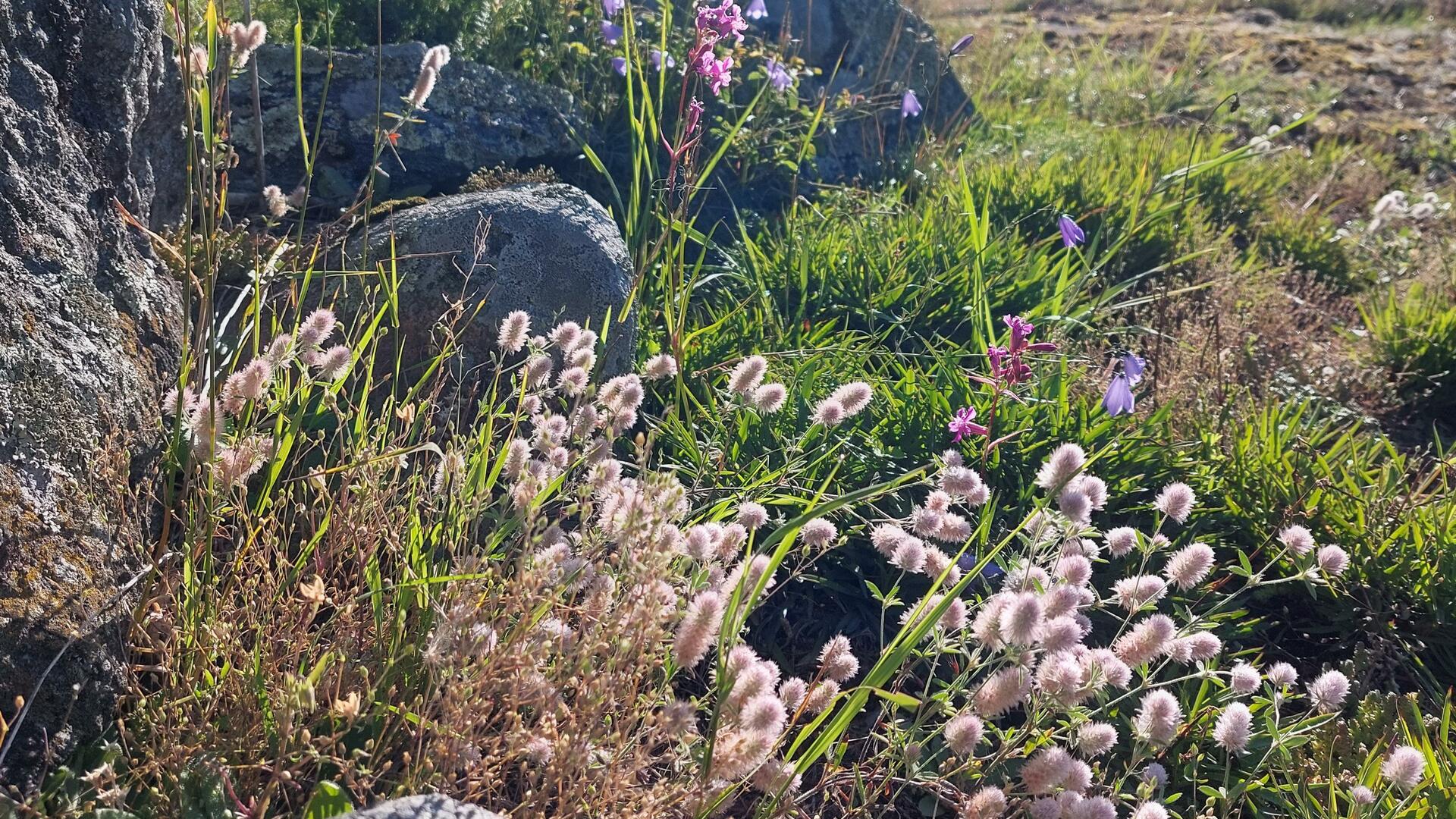 Jänönapilaa ja mäkitervakkoa kallioisella kedolla Viialassa.