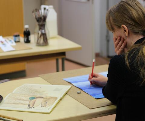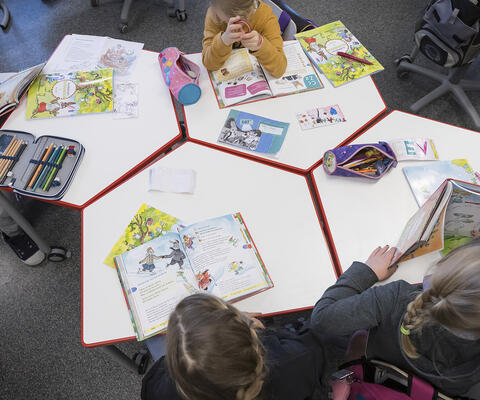 Alakoululaisia työpisteessä tekemässä tehtäviä