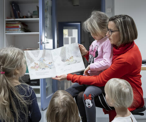 Aikuinen lukemassa lapsille