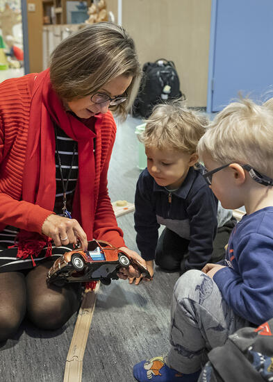 Aikuinen auttamassa lasta päiväkodissa
