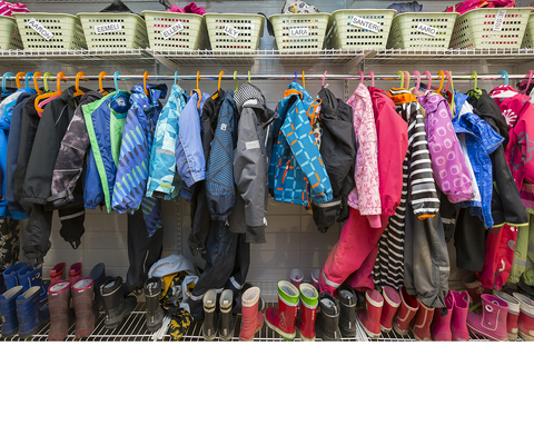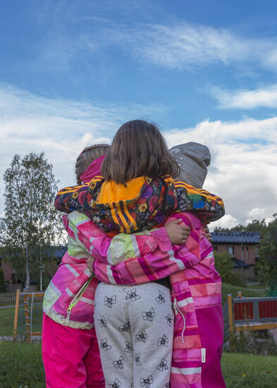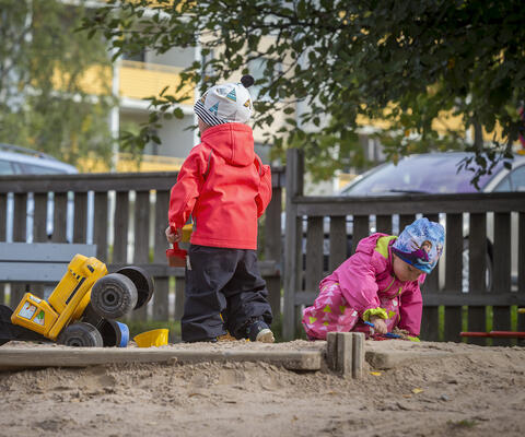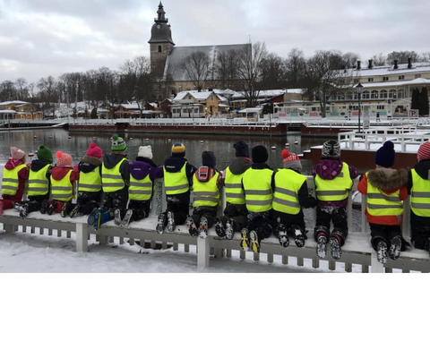 Päiväkotilapset rivissä Naantalin rannassa talvella