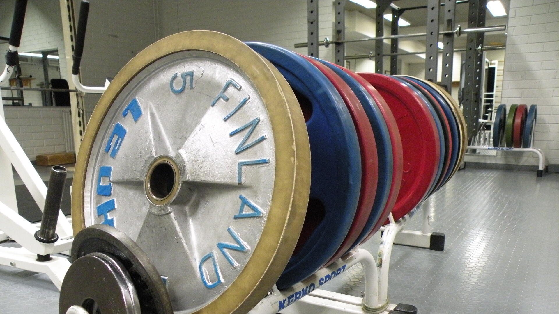 Levypainoja telineessä kuntosalilla