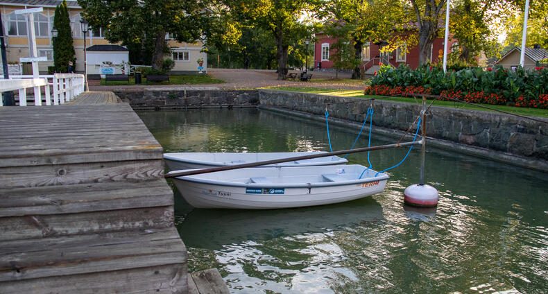 Kaksi soutuvenettä vierekkäin Vanhankaupungin satama-altaassa.