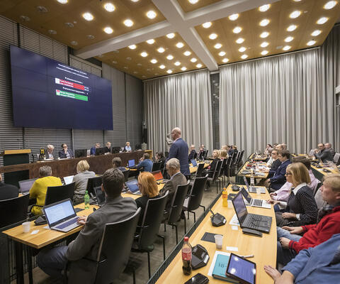Naantalin kaupunginvaltuusto kokoustaa valtuustosalissa kaupungintalolla