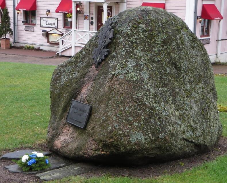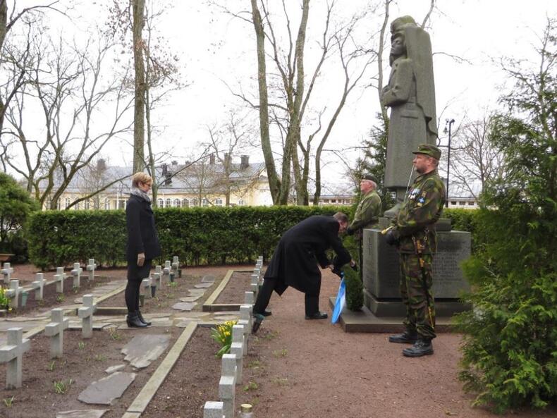Kukkatervehdys Suomalainen sotilas -patsaan juurella