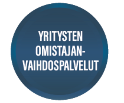 Sinisessä pallossa teksti: Yritysten omistajanvaihdospalvelut