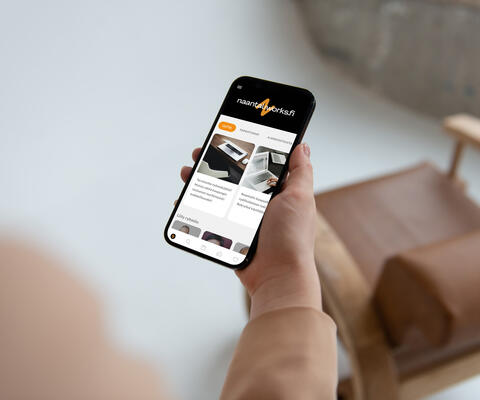 Kädessä puhelin, jossa avoinna NaantaliWorks-sovellus.