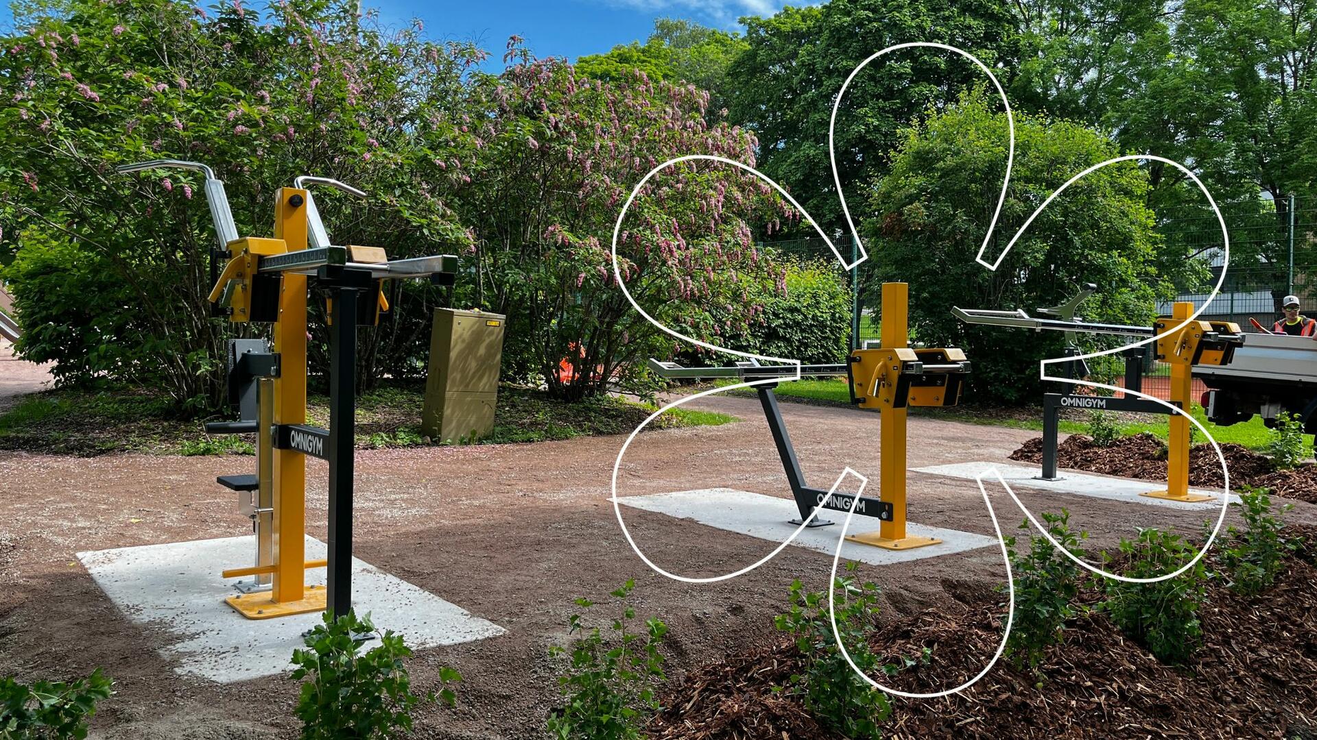 Kirkkopuistoon on asennettu kolme uutta ulkokuntoilulaitetta osana tämän vuoden asukasbudjettia. Laitteet löytyvät leikkipuiston ja tenniskenttien vierestä.