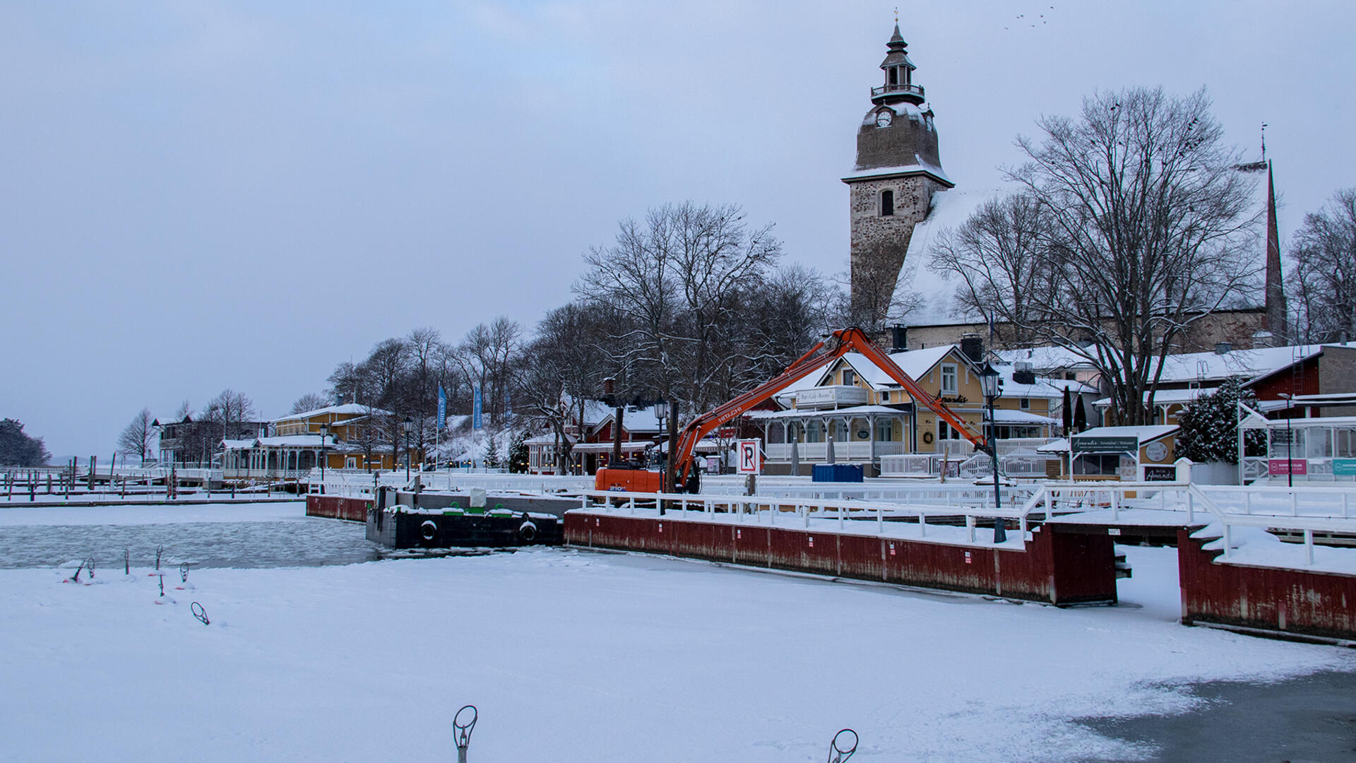 Vanhankaupungin rannassa on käynnissä laiturinlevennystyö ravintola Merisalin ja Amandiksen kohdalla. Levennystöiden vuoksi rannassa liikutaan työlautoilla ja jäätä rikotaan jatkuvasti veneluiskan ja Merisalin sekä Amandiksen edessä. Tämän vuoksi jää ei kanna Merisalin ja Ukkopekan laiturin välisessä altaassa eikä jäälle pidä mennä.