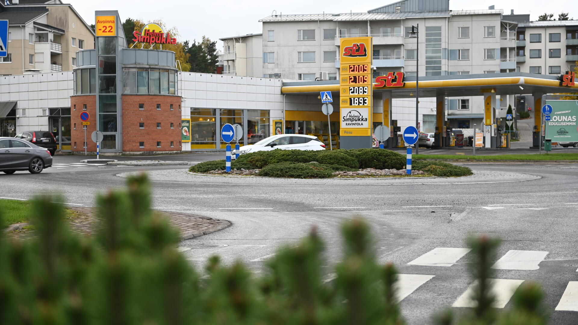 Ajoneuvoliikennettä Järveläntien liikenneympyrässä.