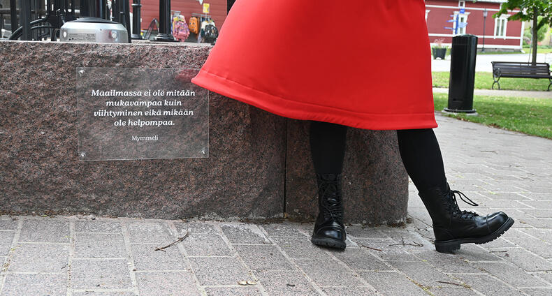 Muumimaailman kotikaupungissa, Naantalissa, voit kulkea rantaa pitkin ja lukea lauseita Muumien filosofiasta.