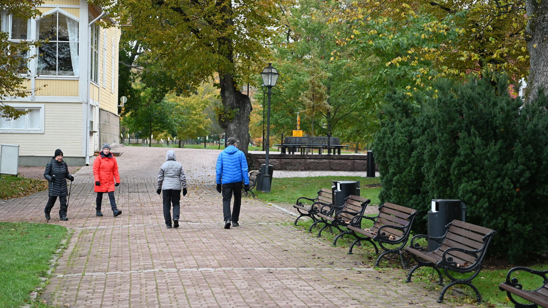 Kävelijöitä Vanhankaupungin rannan kävelytiellä.
